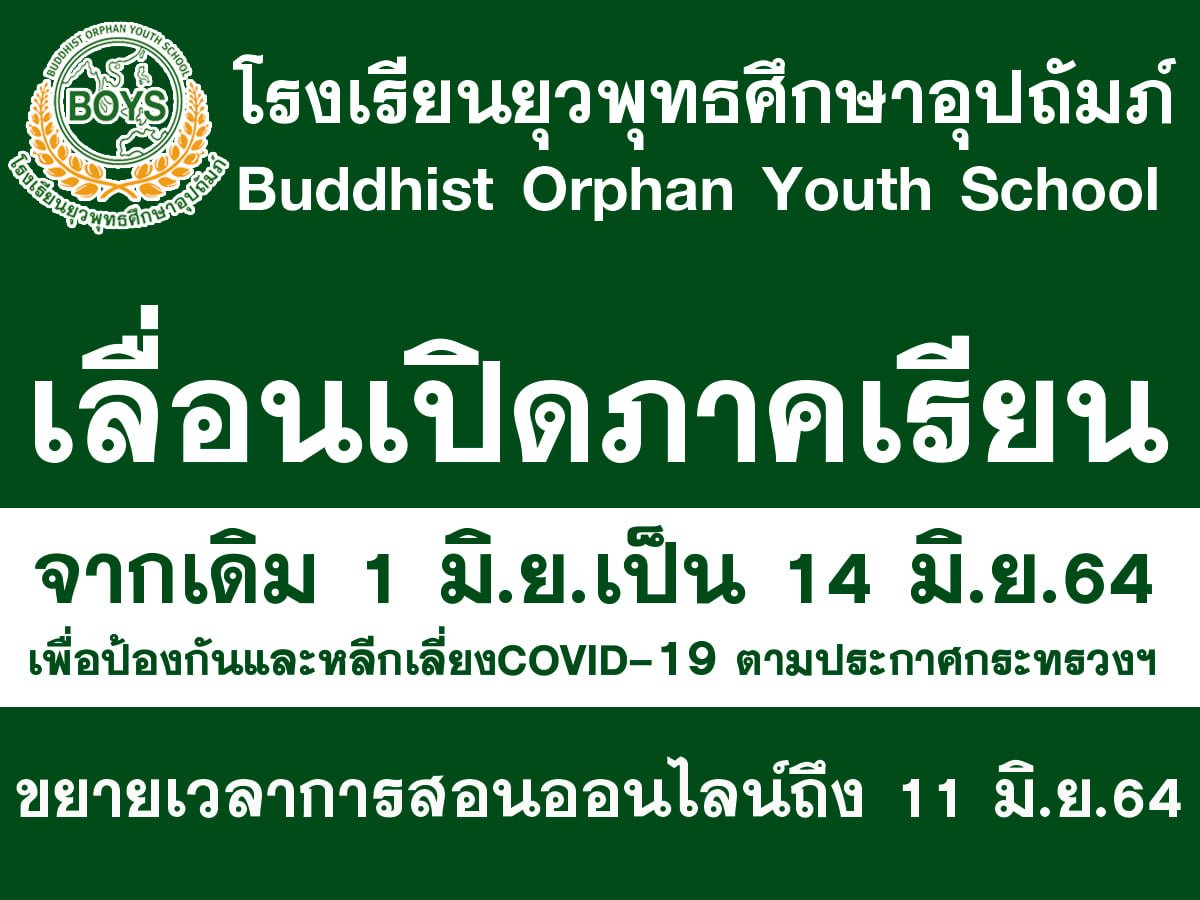 เลื่อนเปิดภาคเรียนจากเดิม 1 มิ.ย. เป็น 14 มิ.ย. 64 และ ขยายเวลาเรียนออนไลน์ จนถึงวันที่ 11 มิ.ย.64
