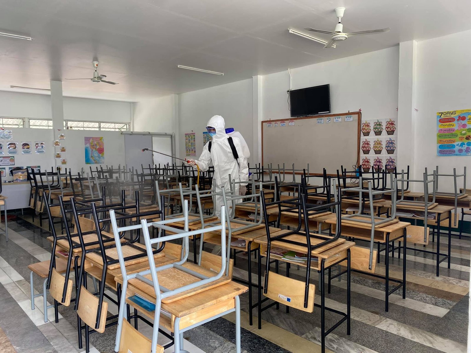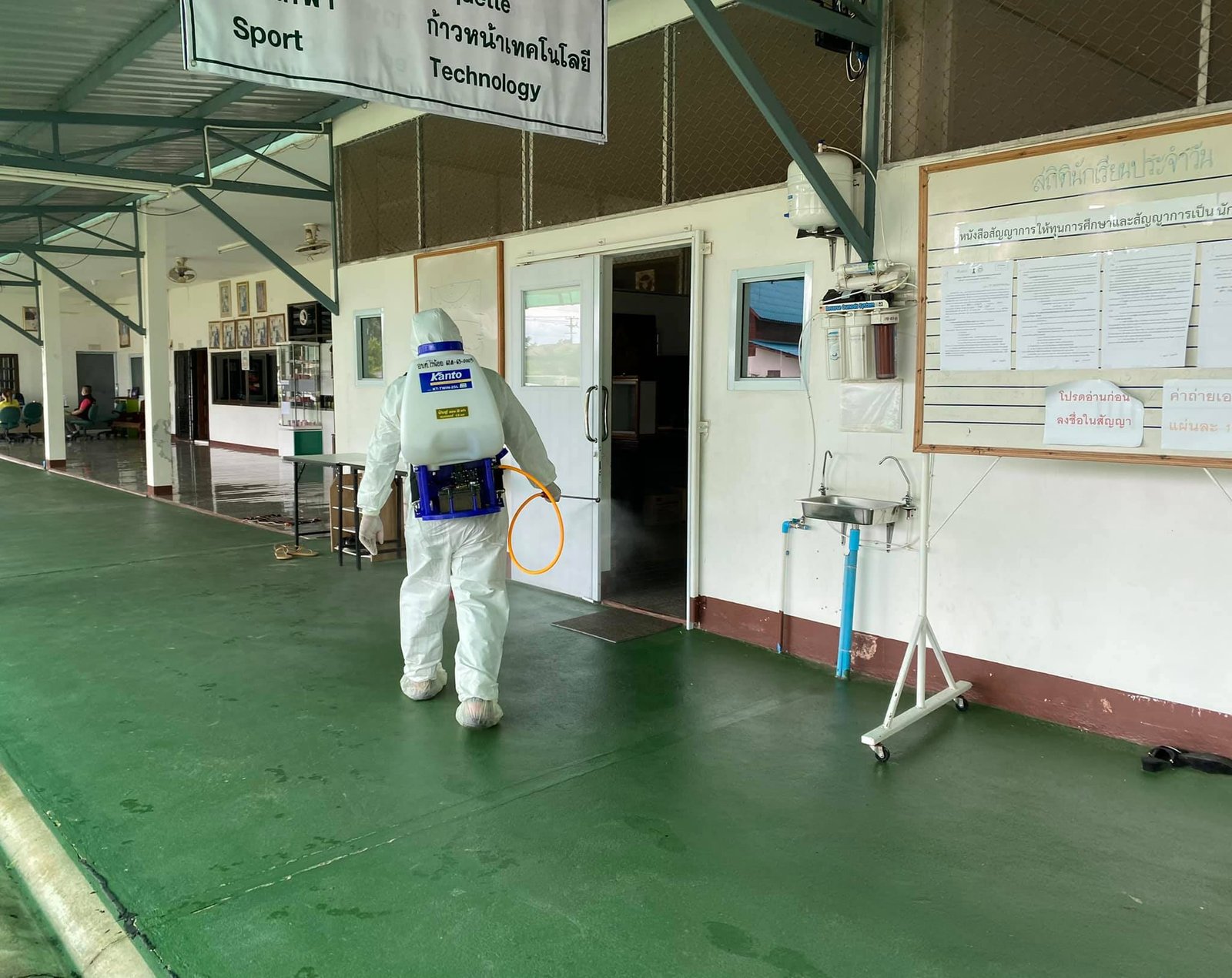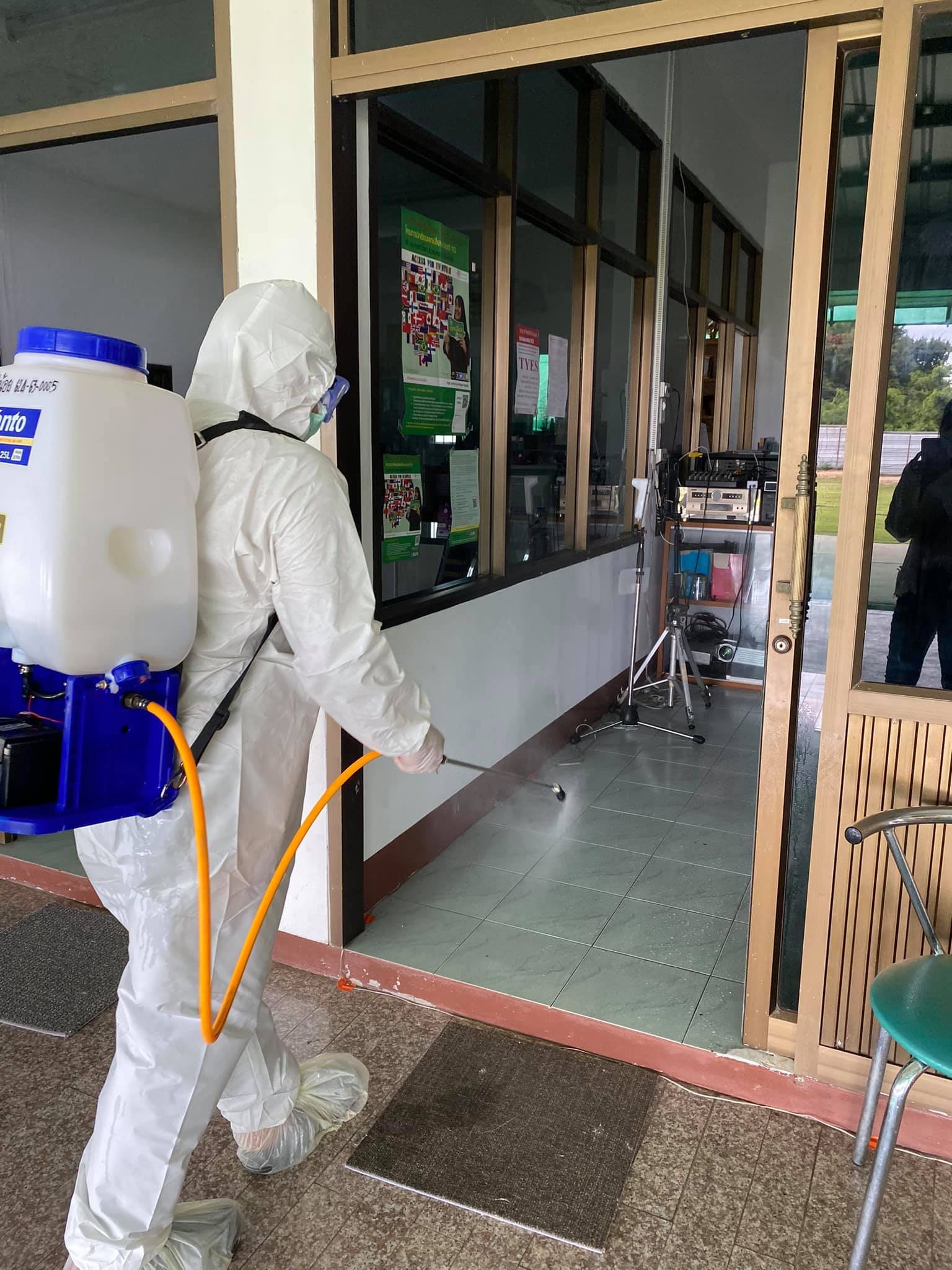 ทำความสะอาดโรงเรียนโดยการฉีดพ่นน้ำยาทำความสะอาด และฆ่าเชื้อโรค พื้นที่บริเวณโดยรอบโรงเรียนยุวพุทธศึกษาอุปถัมภ์ เพื่อป้องกันการแพร่ระบาดของโรคติดเชื้อไวรัสโคโรนา 2019 (COVID-19)